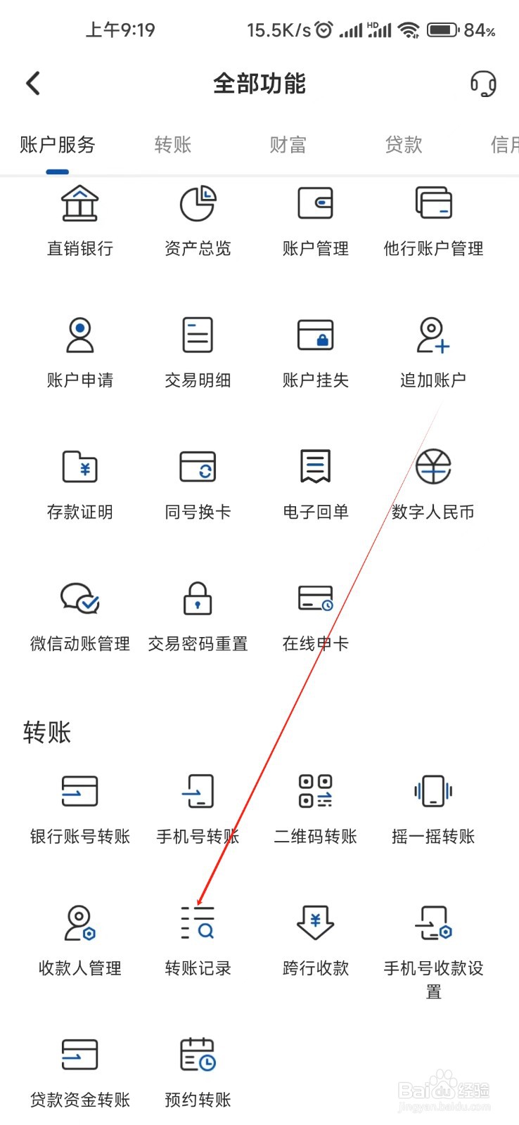 3、最后,我们选择“转账记录”点击进入即可完成。