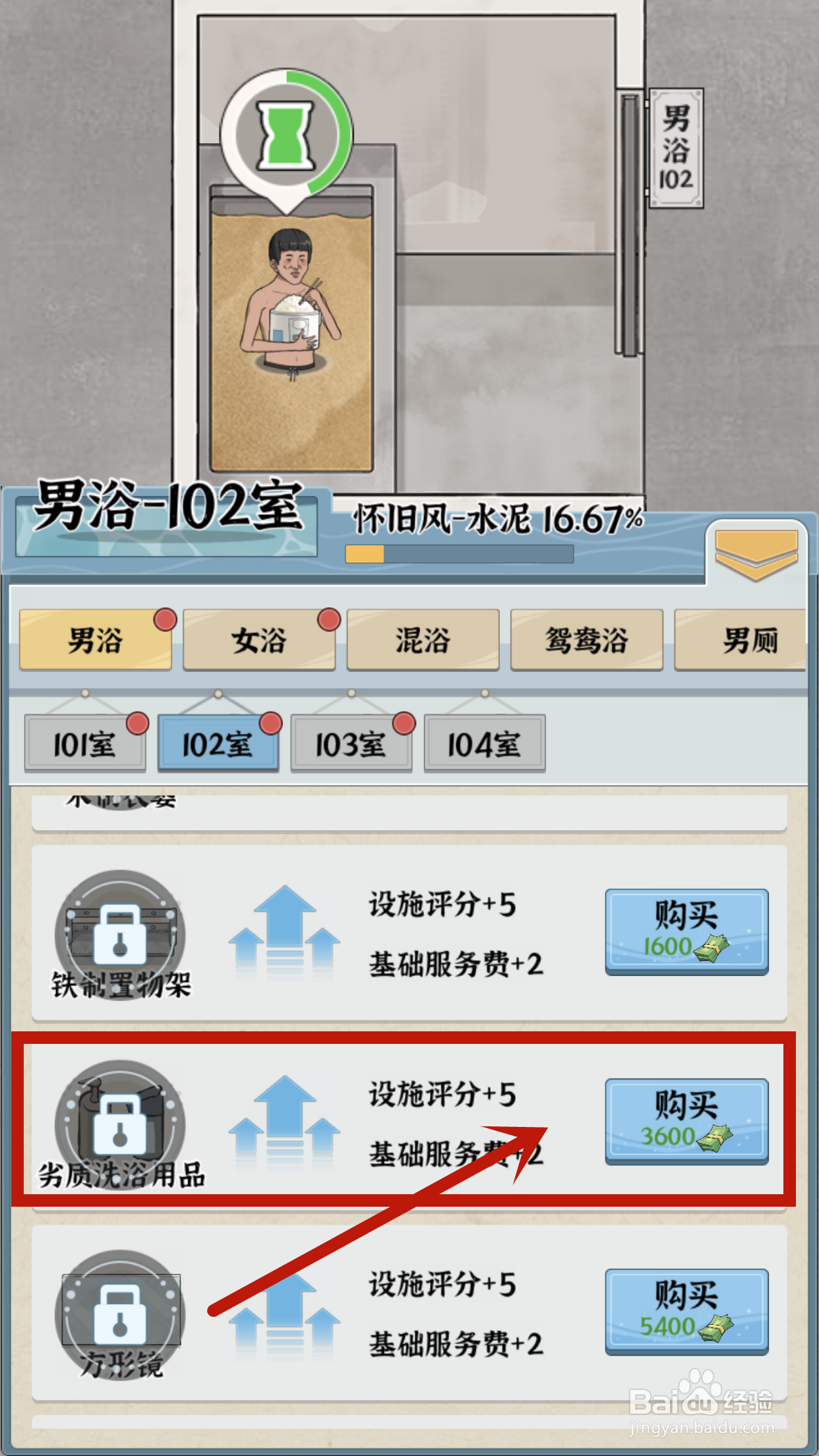 怎么在浴场之王中给男浴102室购买劣质洗浴用品