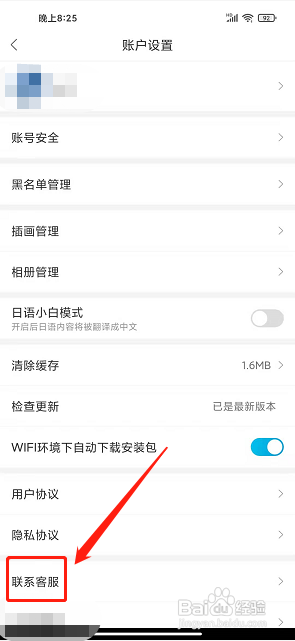 3、点击联系客服进入账号设置界面,点击【联系客服】。