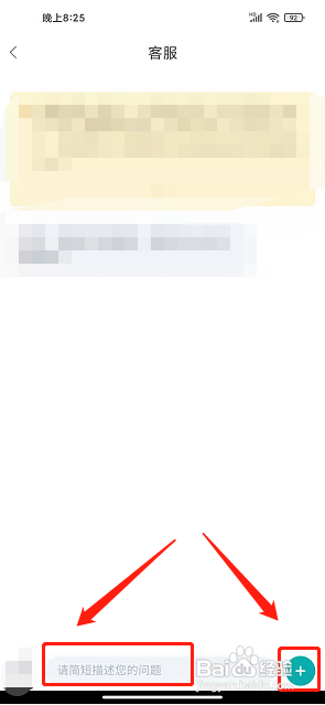 4、点击+图标进入客服界面,输入对话内容,点击【+图标】。