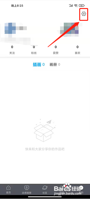 2、点击设置图标进入我的界面,点击页面右上角【设置图标】。
