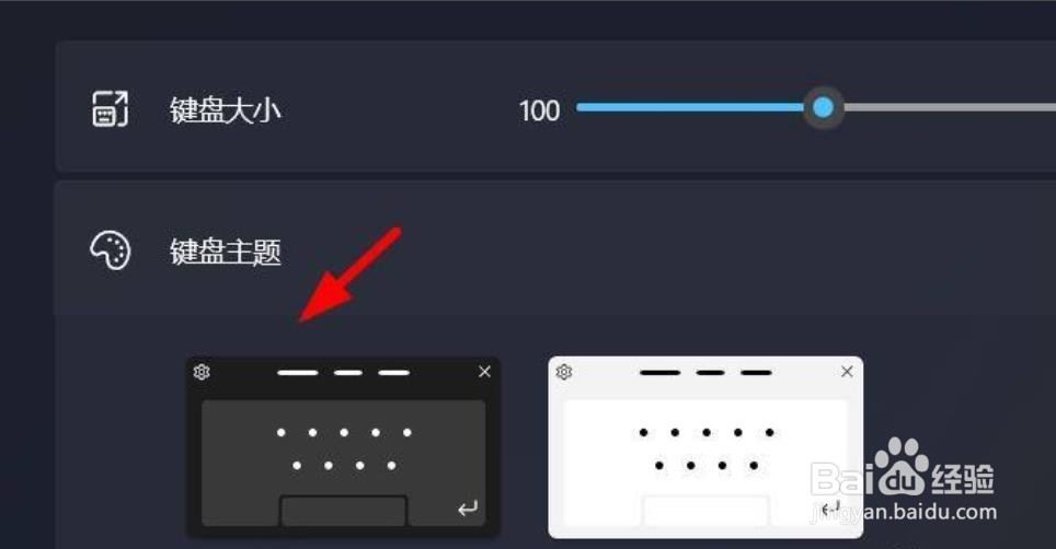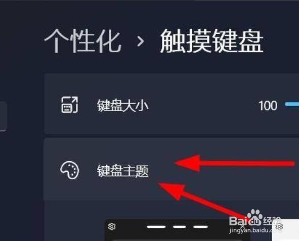 1、第一步,在Windows11触摸键盘这里找到键盘主题这个属性。