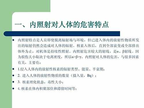 特别是一些有效半衰期很长的核素,在体内排泄速度很慢,容易造成人体的长期负担。