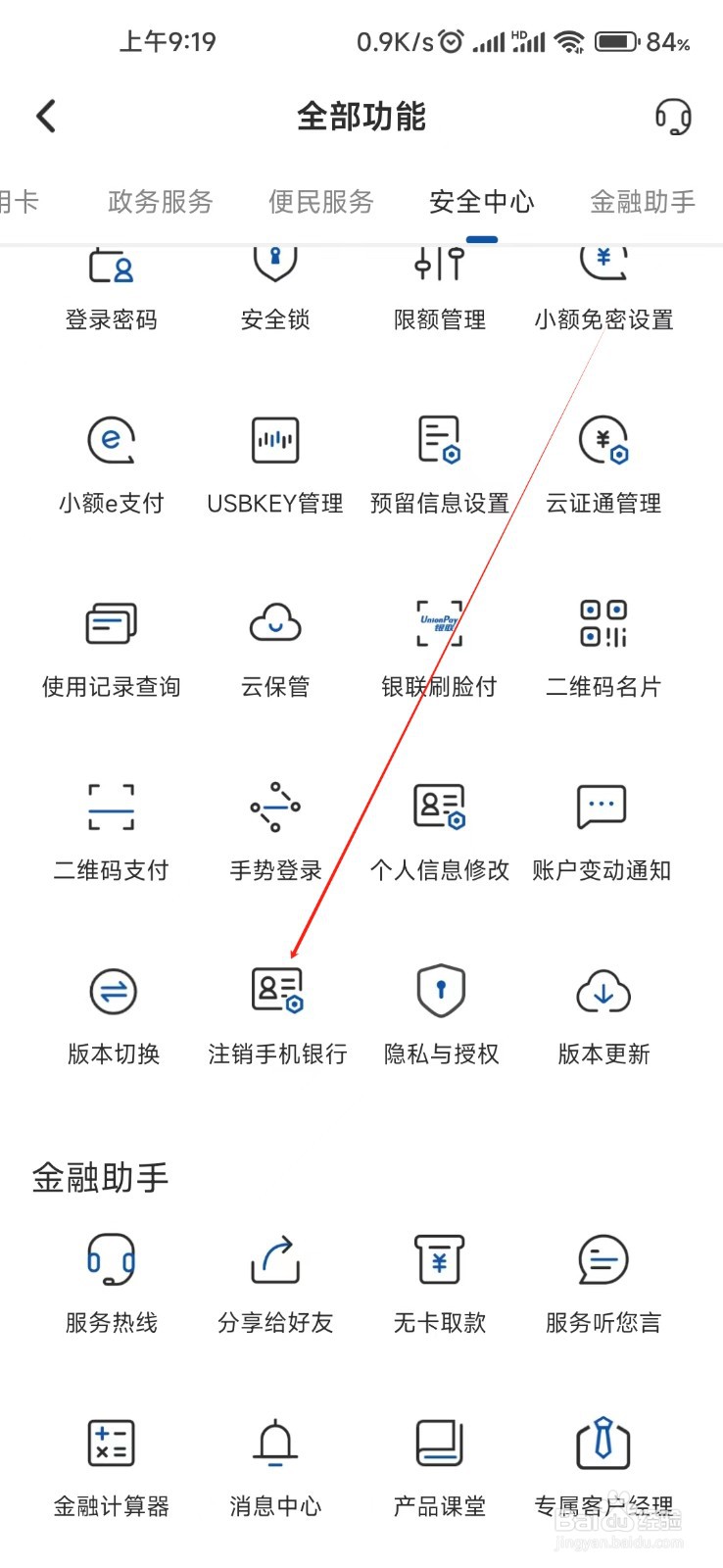 3、最后,我们选择“注销手机银行”点击进入即可完成。