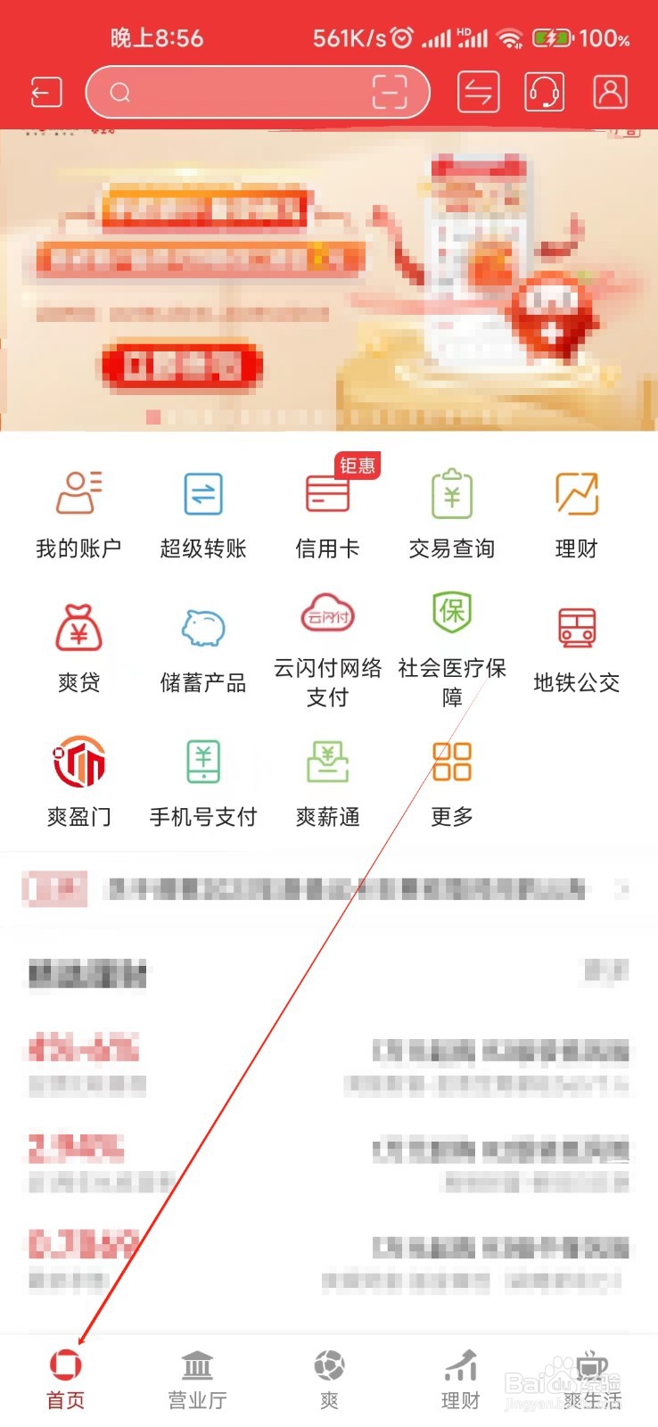 1、打开贵阳银行后,点击当前页面下方"首页"选项。