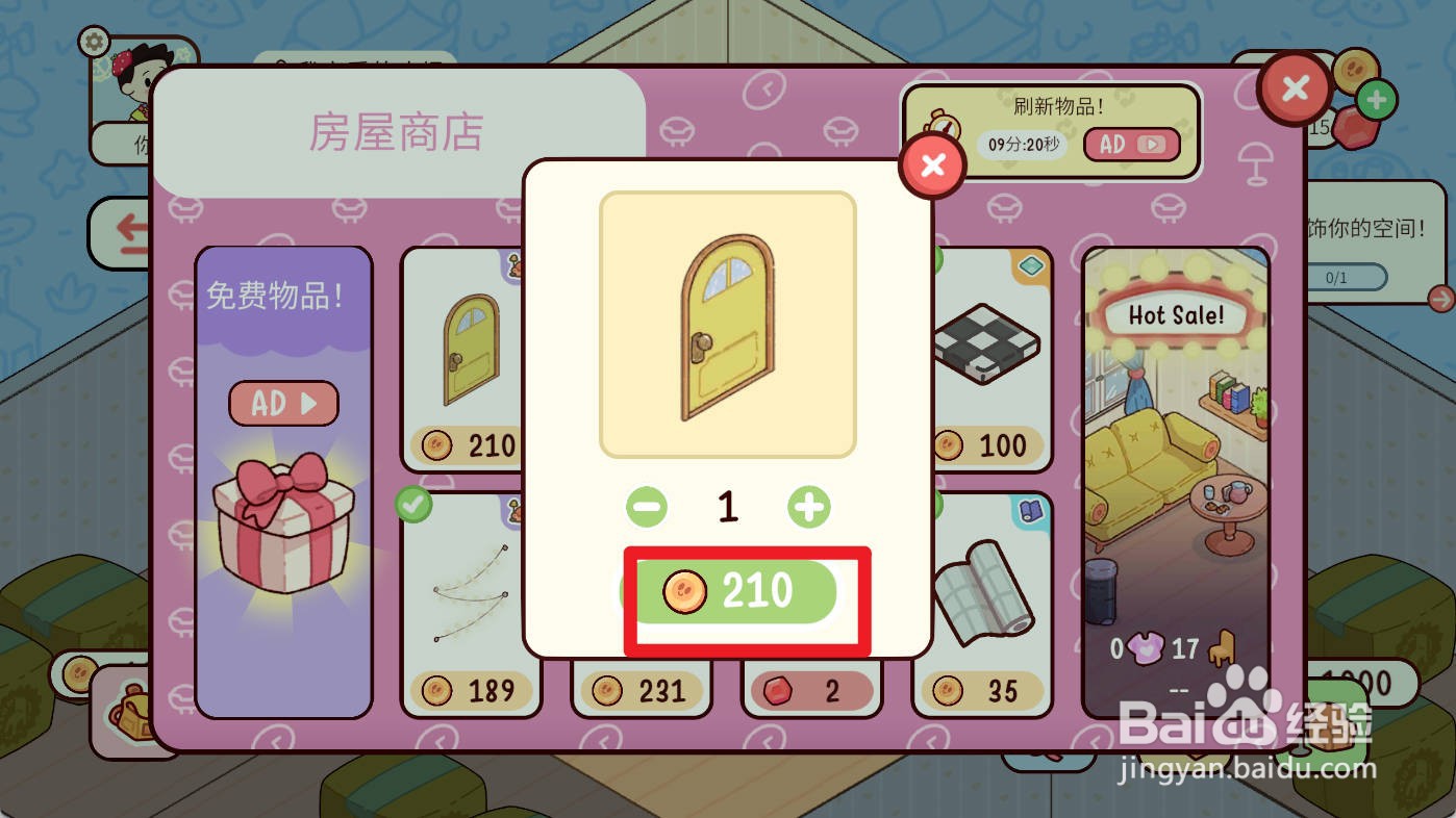 4、在买叶黄色扇门购买界面,点击下方的【210金币】即可
