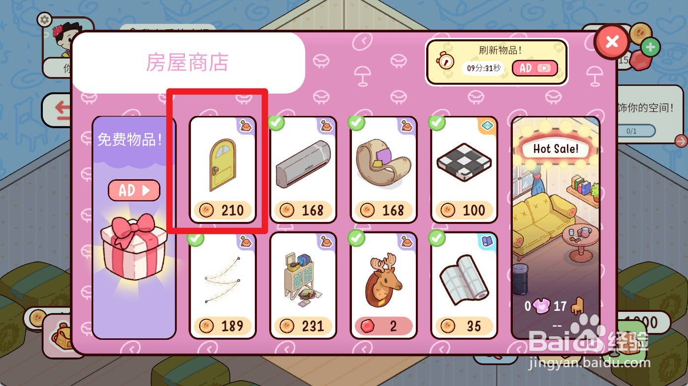 3、在房屋商店弹窗中,选择【叶黄色扇门】